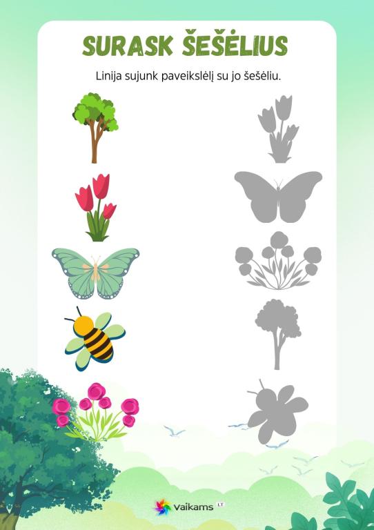 🌿 Medžių, lapų ir gėlių užduotys