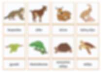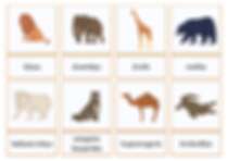 🦁 Laukinių gyvūnų kortelės (liūtas, dramblys, žirafa, meška, pelėda, erelis ir kt.)